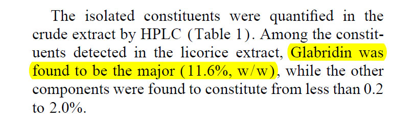 האם הוא נמצא בכמות אפקטיבית כפי שהוכח במחקרים? כמה כמוסות נדרשות כדי להבטיח את הכמות האפקטיבית במחקר?מרבית תוספי התזונה מבוססי צמח הליקוריץ אינם מכילים רכיב זה כלל או שמכילים אותו במינון נמוך ולא משמעותי.